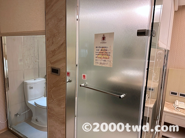 バスエリアはトイレと乾湿分離のシャワーブース+洗面台の構成。高雄のホテルはバスタブがないことが多いです。
